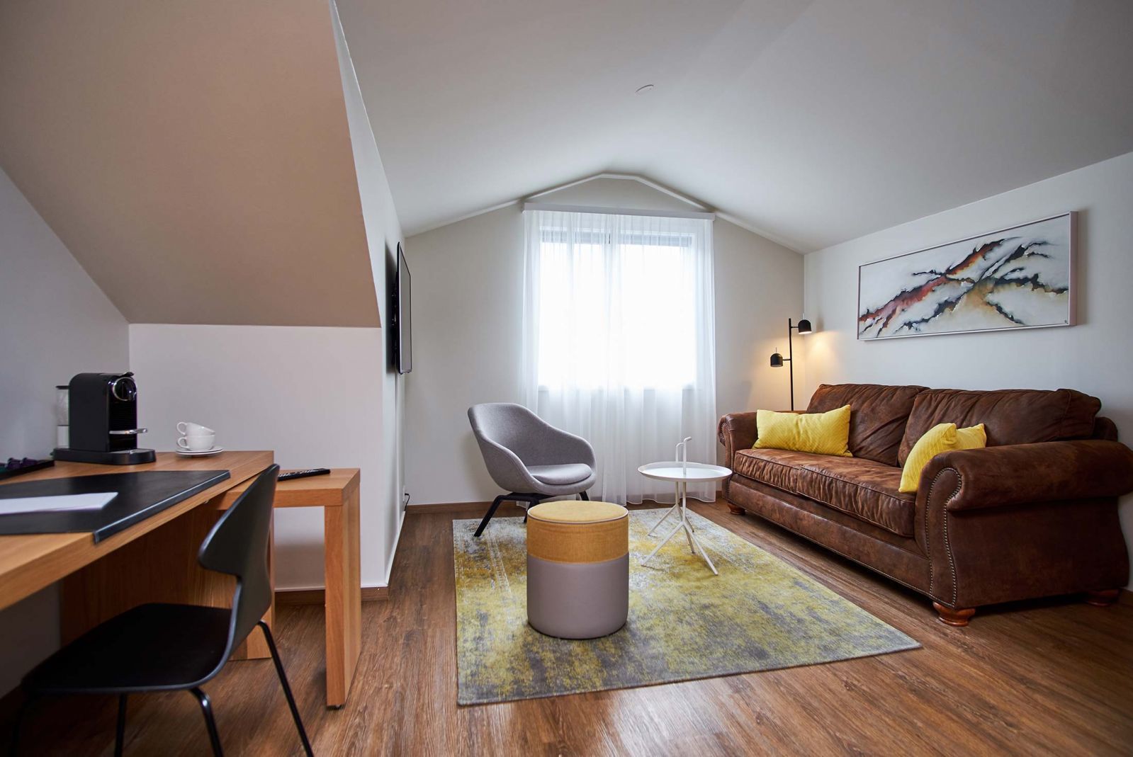 What mainly separates our 2 Junior Suites from other rooms (apart from the Suite) is that the Junior Suite has a sofa bed. Thus, its accommodation capacity for children is higher than other rooms (apart from the Suite). Like the Loft Suites, the Junior Suites also have a coffee maker and a safety deposit box. Both Junior Suites are on the second floor.